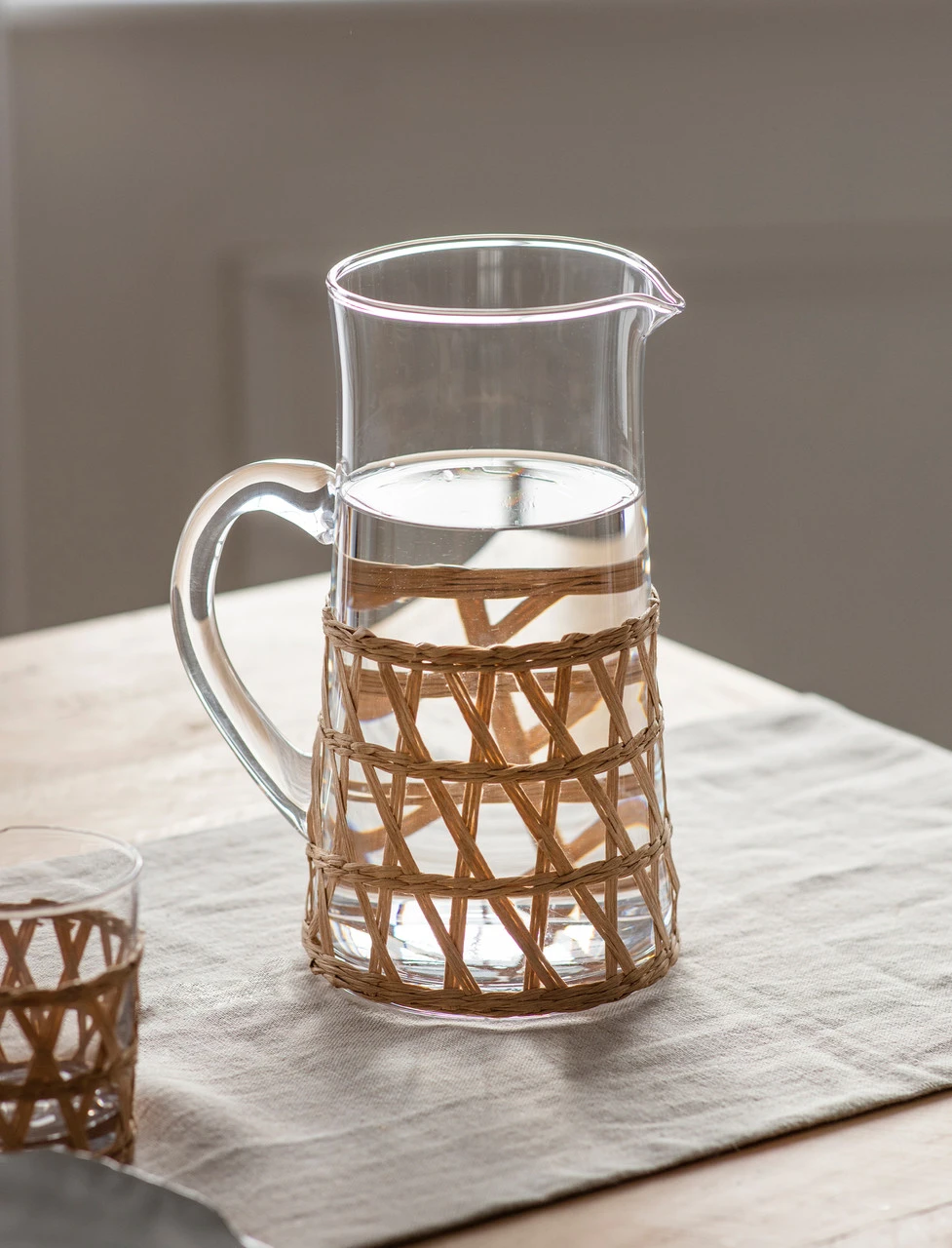 Rattan is not removable, therefore the jug is not dishwasher safe