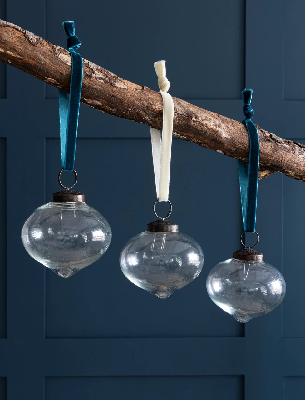 Set the scene for the festive period with the Set of 3 Haile Teardrop Baubles, made of recycled glass in Clear and Amber…